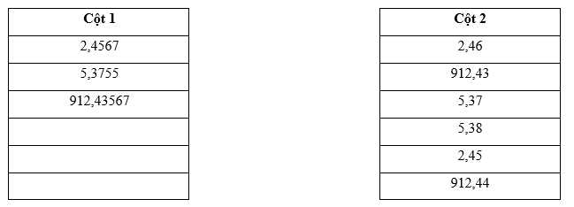 Câu 16 [1038100]: Hãy ghép số chưa quy tròn trong cột 1 với số đã quy tròn đến chữ số thập phân thứ hai trong cột 2. Có hai giá trị thừa mà bạn không cần sử dụng.