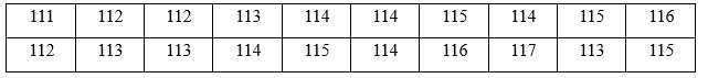 Câu 23 [1038162]: Hãy tìm số trung bình, tứ phân vị và mốt của mẫu số liệu sau.
