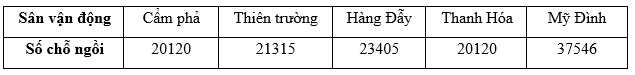 Câu 17 [1038156]: Bảng sau đây cho biết số chỗ ngồi của một số sân vận động được sử dụng trong Giải Bóng đá Vô địch Quốc gia Việt Nam năm 2018 (số liệu gần đúng).