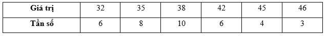 Sắp xếp số liệu theo thứ tự không giảm: 28; 31; 32; 33; 33; 34; 34; 35; 35; 37; 37; 45.
