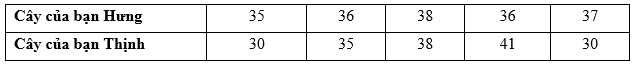 Bạn Hưng và bạn Thịnh thống kê kết quả chiều cao (đơn vị: centimet) của 5 cây nguyệt quế mà mỗi người trồng sau một thời gian như sau: