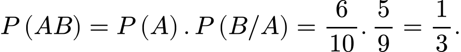Sau lần rút đầu tiên, còn lại 9 lá thăm trong đó có 3 lá thăm có thưởng nên xác suất người chơi rút được lá thăm có thưởng trong lần rút thứ hai là: