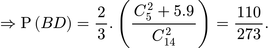 BD là biến cố Minh lấy được bi xanh và các viên bi 2 bạn lấy có đủ 2 màu.