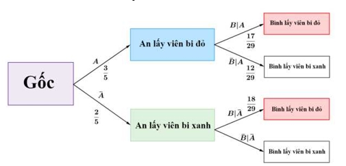 Gọi A là biến cố "Viên bi được lấy ra từ hộp thứ hai là bi đỏ";