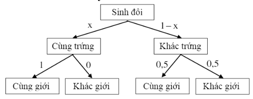 • Cặp sinh đôi khác trứng thì giới tính của mỗi đứa độc lập với nhau và có xác suất 0,5 là con trai.