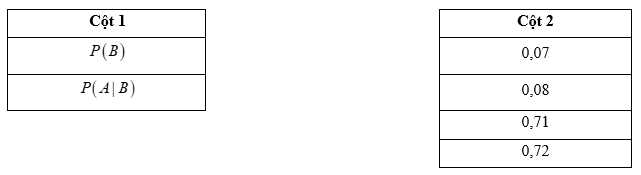 Câu 21 [1038592]: Có hai cái hộp giống nhau, hộp thứ nhất chứa 5 quả bóng bàn màu trắng và 3 quả bóng bàn màu vàng, hộp thứ hai chứa 4 quả bóng bàn màu trắng và 6 quả bóng bàn màu vàng. Minh lấy ra ngẫu nhiên 1 quả bóng từ hộp thứ nhất. Nếu quả bóng đó là bóng vàng thì Minh lấy ra ngẫu nhiên đồng thời 2 quả bóng từ hộp thứ hai, còn nếu quả bóng đó màu trắng thì Minh lấy ra ngẫu nhiên đồng thời 3 quả bóng từ hộp thứ hai. Biết rằng các quả bóng lấy ra từ hộp thứ hai đều có màu trắng.