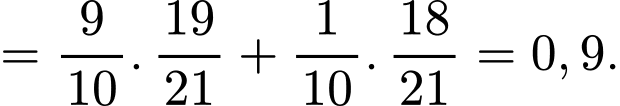 Câu 29 [1038600]: Có 2 hộp đựng sản phẩm. Hộp thứ nhất có 10 sản phẩm trong đó có 9 sản phẩm tốt và 1 sản phẩm xấu. Hộp thứ hai có 20 sản phẩm trong đó có 18 sản phẩm tốt và 2 sản phẩm xấu. Từ hộp thứ nhất lấy ngẫu nhiên một sản phẩm bỏ sang hộp thứ hai. Tìm xác suất để lấy ngẫu nhiên một sản phẩm từ hộp thứ hai được sản phẩm tốt.