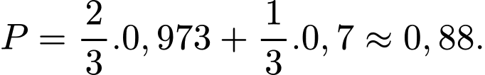 Tại một phòng khám chuyên khoa tỷ lệ người đến khám có bệnh là 83%. Theo thống kê biết rằng nếu chẩn đoán có bệnh thì đúng tới 90%, còn nếu chẩn đoán không bệnh thì chỉ đúng 80%. Xác suất chẩn đoán đúng là __________.