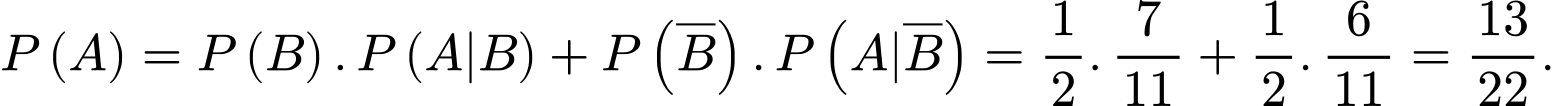 Câu 22 [1038593]: Trong một hộp kín có 7 chiếc bút bi xanh và 5 chiếc bút bi đen, các chiếc bút có cùng kích thước và khối lượng. Bạn Sơn lấy ngẫu nhiên một chiếc bút bi từ trong hộp, không trả lại. Sau đó bạn Tùng lấy ngẫu nhiên một trong 11 chiếc bút còn lại. Tính xác suất để hai chiếc bút lấy ra có cùng màu.