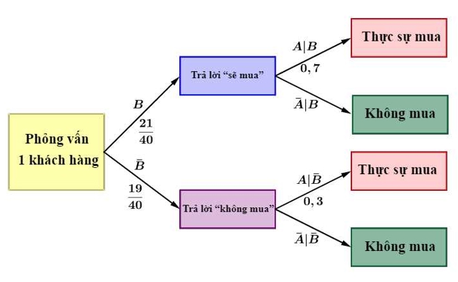 Ta có \[B|A\] là biến cố: “Người đó đã trả lời sẽ mua sản phẩm khi được phỏng vấn và người được phỏng vấn thực sự sẽ mua sản phẩm ”.