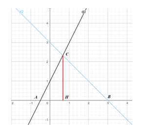 cắt nhau tại C và cắt trục Ox theo thứ tự A, B. Tìm tọa độ các điểm A, B, C.b) Tính chu vi và diện tích của tam giác ABC.