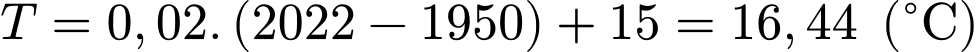 Trong đó T là nhiệt độ trung bình của bề mặt Trái Đất tính theo độ C, t là số năm kể từ năm 1950.