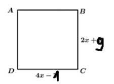 Câu 5 [1037010]: Tìm x, biết tứ giác ABCD là hình vuông (Hình vẽ bên).