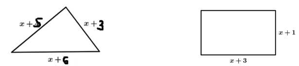 Câu 6 [1037011]: Hình tam giác và hình chữ nhật ở hình vẽ có cùng chu vi. Giá trị của x là bao nhiêu?