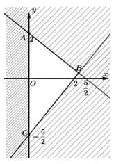 Miền nghiệm của hệ bất phương trình là một tam giác vuông tại gốc tọa độ O