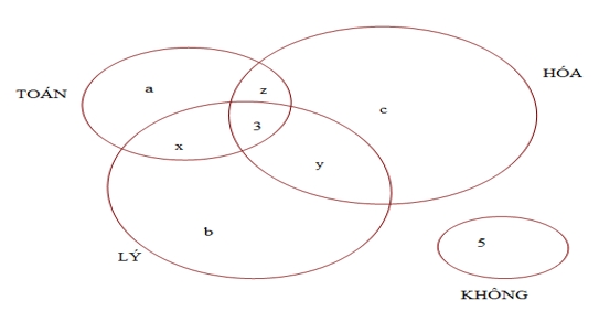lần lượt là số em chỉ thích mỗi môn Toán, Lý, Hóa