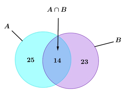 Dựa vào dữ kiện: Một lớp học có 25 học sinh chơi bóng đá, 23 học sinh chơi bóng bàn, 14 học sinh chơi cả bóng đá và bóng bàn và 6 học sinh không chơi môn nào