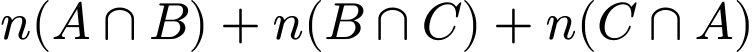 : trong tổng này, mỗi phần tử của A giao B, B giao C, C giao A được tính làm hai lần nên trong tổng