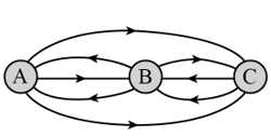 Câu 17 [1037462]: Hình ảnh sau đây biểu diễn các con đường một chiều nối các thành phố A, B và C.