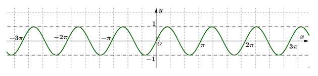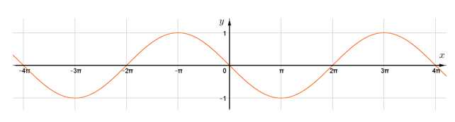 Đồ thị là một đường hình sin đi qua gốc tọa độ, và tuần hoàn với chu kì