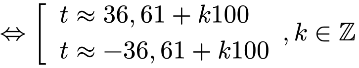 Có 5 giá trị t thoả mãn là:
