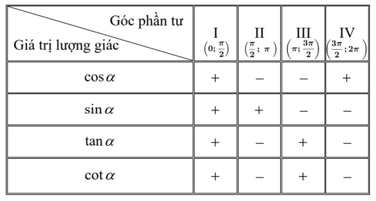📒 Nhắc lại kiến thức: Giá trị lượng giác của góc lượng giác: