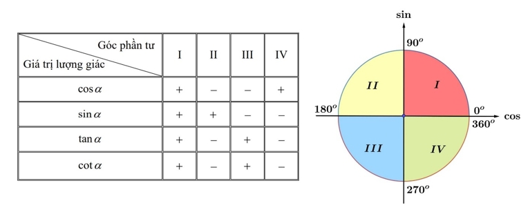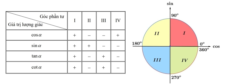 thuộc vào góc phần tư thứ IV của đường tròn lượng giác