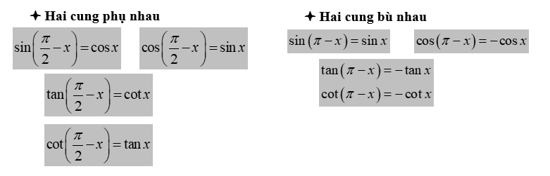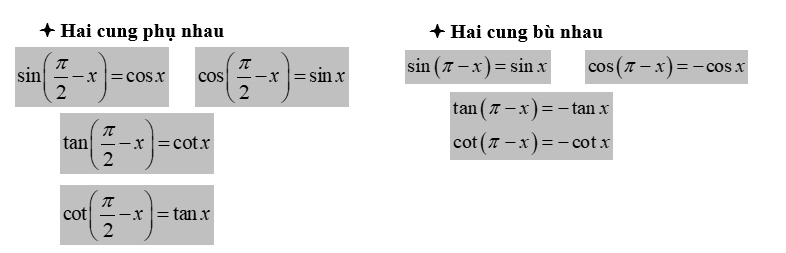 📒 Nhắc lại kiến thức về mối quan hệ giữa các cung lượng giác đặc biệt: