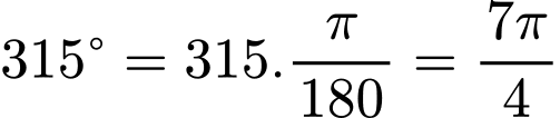 Số đo theo đơn vị radian của góc 315° là: