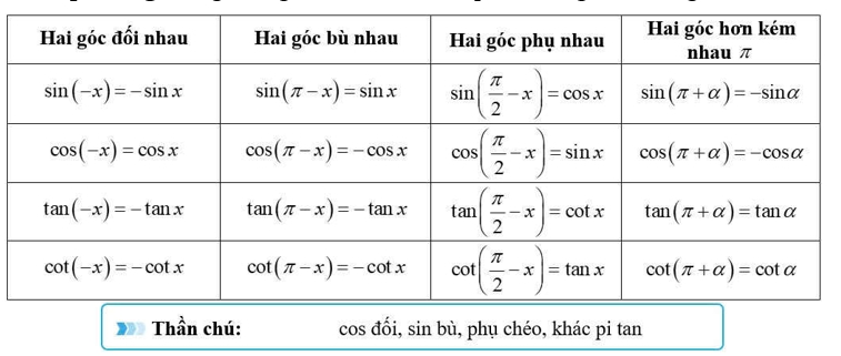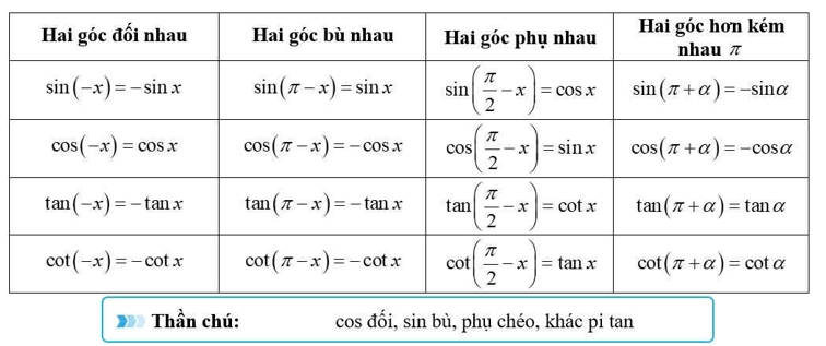 📒 Áp dụng bảng công thức về mối quan hệ giữa hai góc đặc biệt: