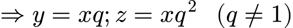Dựa vào dữ kiện: Ba số x; y; z theo thứ tự lập thành một cấp số nhân với công bội q khác 1
