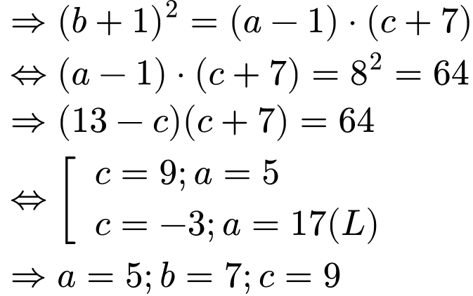 Kết hợp với dữ kiện: Nếu bớt 1 ở số hạng thứ nhất, thêm 1 ở số hạng thứ hai và thêm 7 vào số hạng thứ ba thì ta được ba số mới lập thành một cấp số nhân