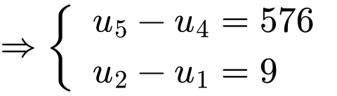 Dựa vào dữ kiện: Một cấp số nhân gồm các số hạng dương, hiệu số giữa số hạng thứ 5 và thứ 4 là 576 và hiệu số giữa số hạng thứ 2 và số hạng đầu tiên là 9