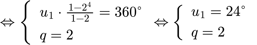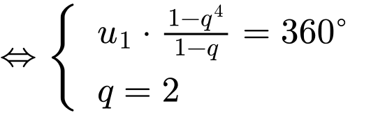 Cho tứ giác ABCD có bốn góc tạo thành một cấp số nhân có công bội bằng 2. Số đo góc nhỏ nhất bằng [[20849889]]
