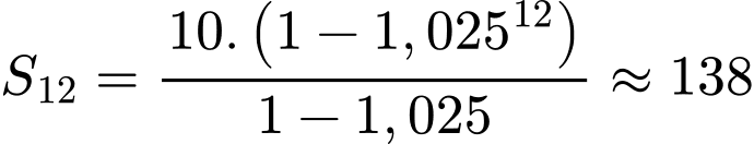 Một nhân viên công ty với mức lương tháng đầu là 10 triệu. Sau đó, mỗi tháng lương của anh ấy cứ tăng dần với số phần trăm lương là 2,5%. Tổng số lương anh nhân viên nhận được sau 1 năm làm việc là __________ triệu.