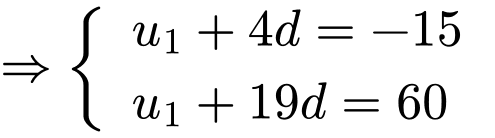 bằng [[20849569]]. Tổng 15 số hạng đầu của cấp số cộng bằng [[20849573]].
