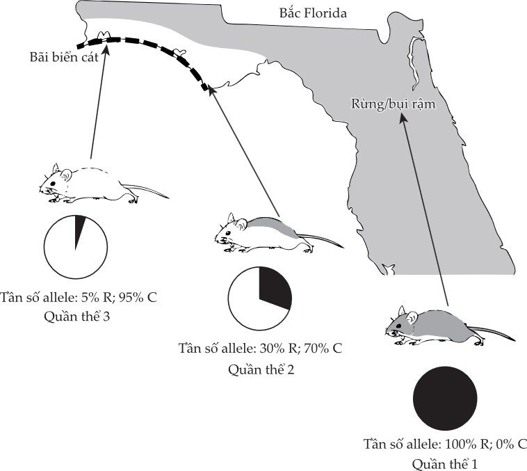 Một loài chuột Peromyscus polionotus được tìm thấy ở Florida, Hoa Kỳ, có một số màu lông khác nhau. Màu lông ở chuột được kiểm soát bởi nhiều gene. Lông màu tối được sản xuất khi các tế bào sản xuất lông tiết ra một sắc tố gọi là eumelanin. Một mức độ eumelanin cao được sản xuất khi một protein xuyên màng gọi là MC1R được kích thích bởi một hormone