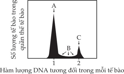 Hàm lượng DNA của nhóm A đang ở mức 1, tương ứng với sự chưa nhân đôi → Đang ở pha G1 là pha dài nhất trong các pha của chu kì tế bào. Đáp án: B