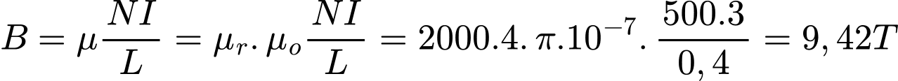 Câu 110 [1086372]: Công thức tính cảm ứng từ B (Tesla) trong một ống dây cuốn quanh một lõi thép được xác định bằng công thức