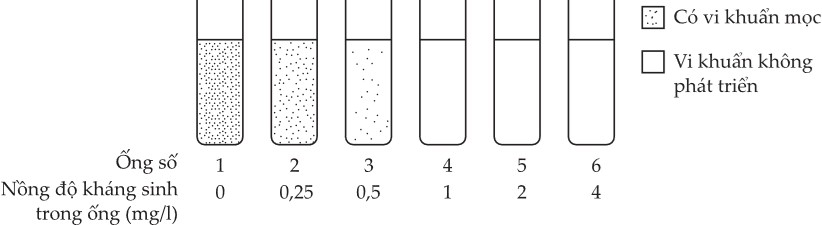 Câu 110 [741096]: Nồng độ kháng sinh tối thiểu để ức chế sự sinh trưởng của vi khuẩn là bao nhiêu?