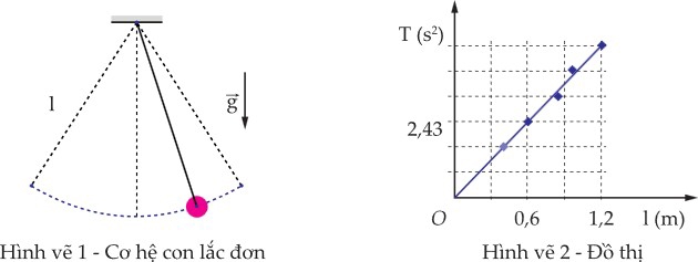 Câu 108 [751628]: Trong bài thực hành đo gia tốc trọng trường g bằng con lắc đơn, một nhóm học sinh tiến hành đo, xử lý số liệu và vẽ được đồ thị biểu diễn sự phụ thuộc của bình phương chu kì dao động điều hòa (T2) theo chiều dài l của con lắc như Đồ thị 2 – Hình vẽ. Lấy π = 3,14. Giá trị trung bình của phép đo gia tốc trọng trường trên bằng