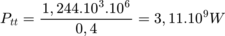 Hiệu suất của nhà máy điện than là 40%. Tức là chỉ có 40% năng lượng tạo ra từ than chuyển thành điện năng. Ta có