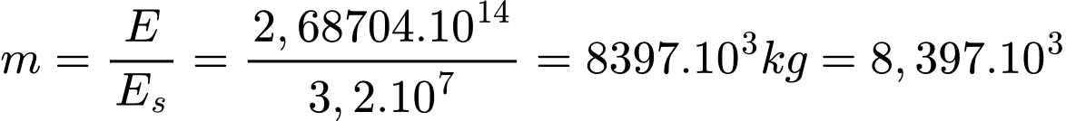 (với E (J) là năng lượng và m (kg) là khối lượng của nhiên liệu)