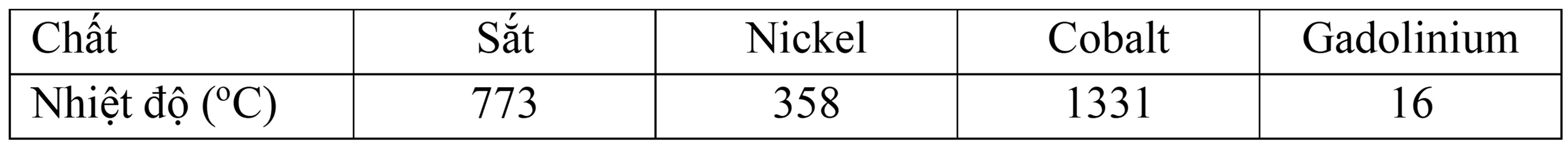 Bảng dưới đây là nhiệt độ Curie của một vài chất: