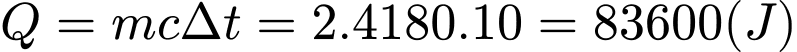 Nhiệt lượng cần cung cấp để tăng nhiệt độ của 2 kg nước thêm 10 °C là 836000J
