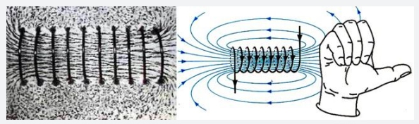 Hình ảnh. Hình ảnh từ trường của ống dây và quy tắc nắm bàn tay phải xác định chiều từ trường.