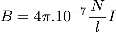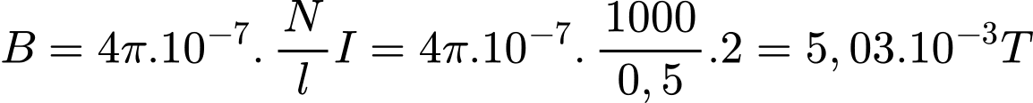 (đơn vị: Tesla, T) bên trong lòng ống dây có lõi không khí được tính bằng: