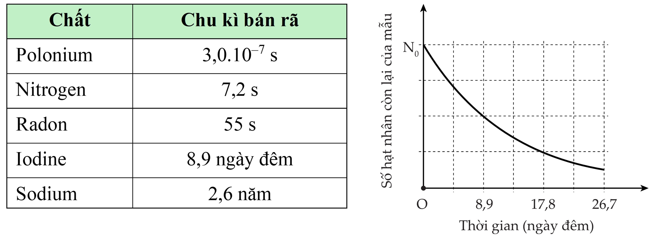 Quan sát trên đồ thị, ta thấy số hạt nhân giảm từ
