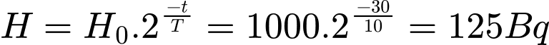 Trong đó: H0: hoạt độ ban đầu (Becquerel, Bq = 1 phân rã/s).