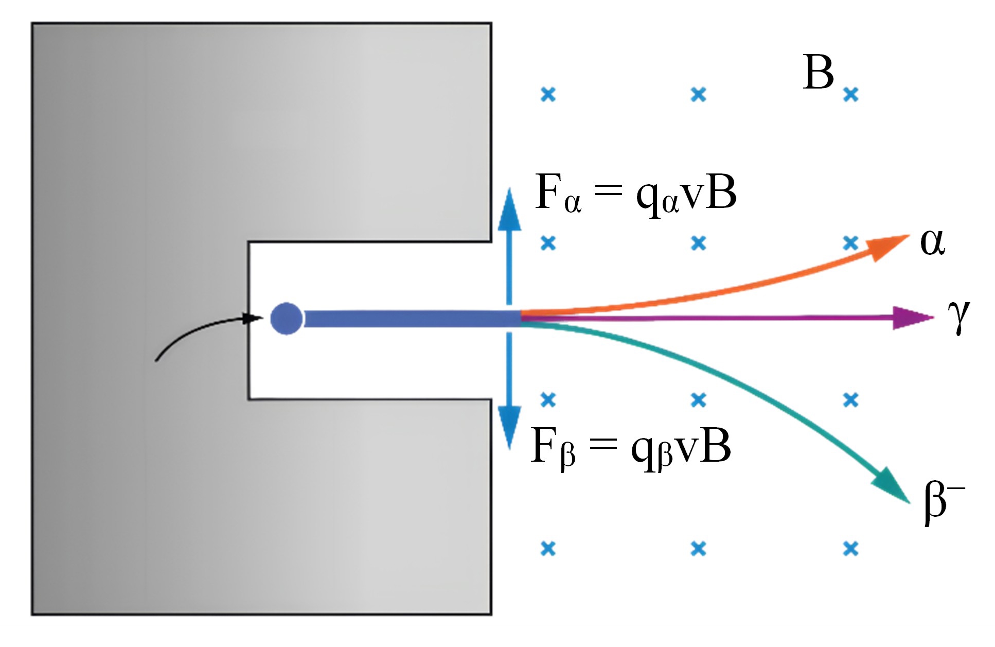 Hình vẽ. Thí nghiệm tác dụng của từ trường lên các hạt α, β và γ.